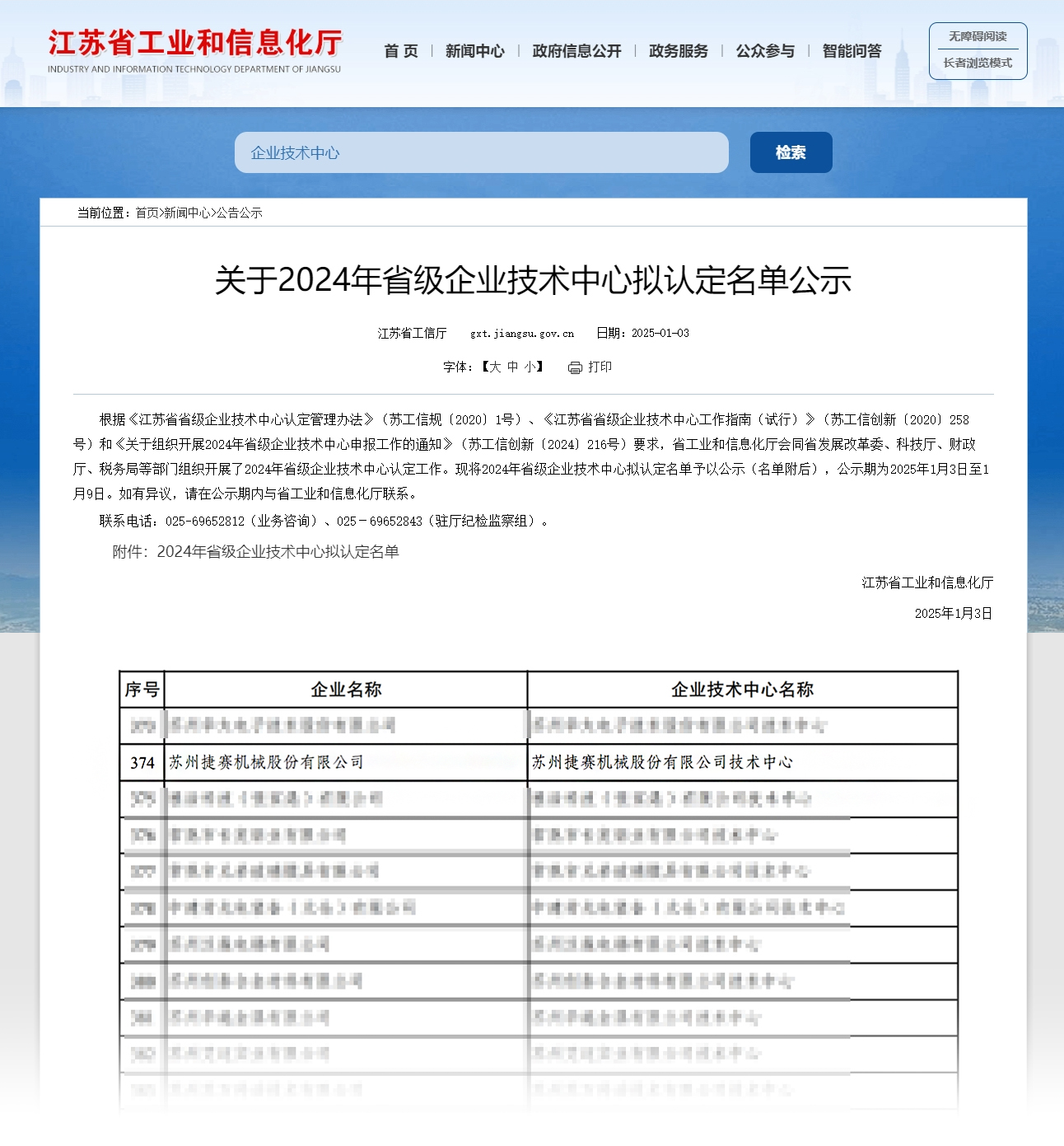 新年伊始,江蘇省工業(yè)和信息化廳對(duì)2024年省級(jí)企業(yè)技術(shù)中心擬認(rèn)定名單進(jìn)行公示。蘇州捷賽憑借在技術(shù)創(chuàng)新與產(chǎn)品研發(fā)方面的卓越表現(xiàn)成功通過(guò)江蘇省企業(yè)技術(shù)中心認(rèn)定,斬獲省級(jí)殊榮!