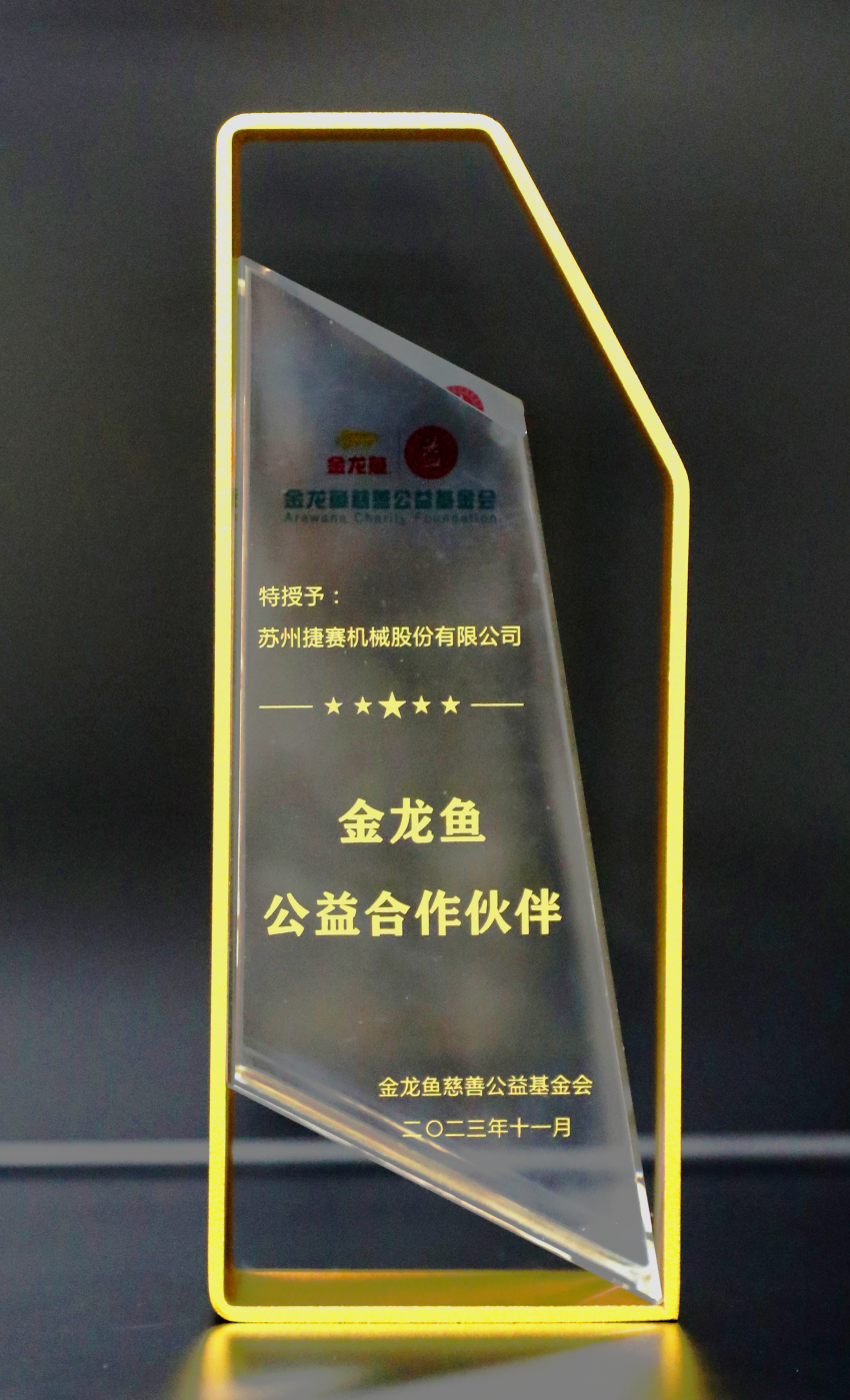 12月18日,金龍魚慈善公益基金會舉辦2023年度答謝活動,蘇州捷賽受邀參加并被授予金龍魚公益合作伙伴。